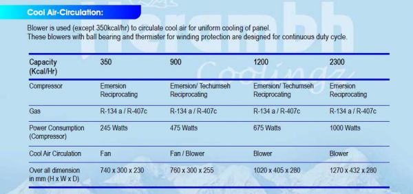 - Capacity based on conditions i.e. evaporating 7.2° C condensing temperature 54°C & ambient temperature 38° C